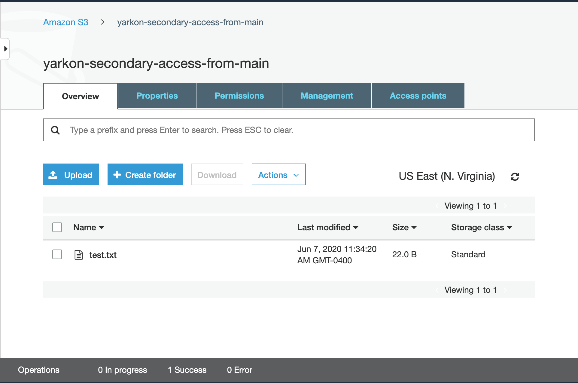 yarkon-secondary-access-from-main. - Upload a test file to the bucket, so we can later test user access.