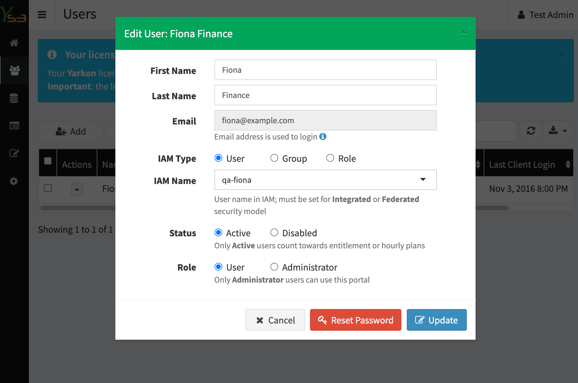 Identify the IAM role used for Yarkon. If you cannot recall its name, you can always get it from the Yarkon Admin Console, Administration section, Access tab.