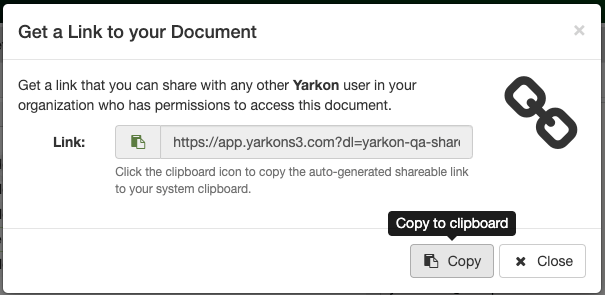 Use the Linking feature of Yarkon to easily share links to documents and folders with other Yarkon users in your organization. If a user has access to the document or folder in the link, the target object would open automatically in Yarkon, making collaboration one-click away.