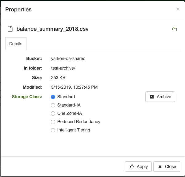 You can control the storage class settings for any document, or any folder including all its content, directly from the user interface with few clicks of the mouse. Changing your storage option was never easier.